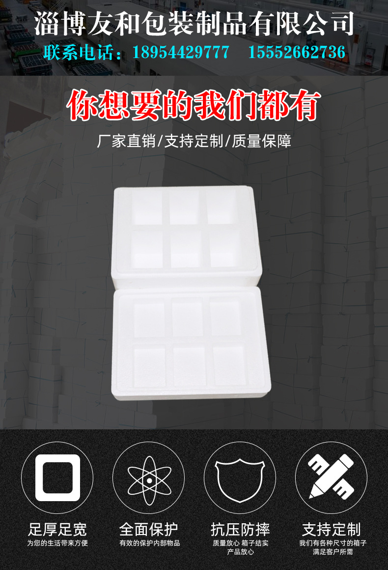 介紹參數圖冊 ????淄博友和包裝制品有限公司是專業的山東泡沫包裝箱加工廠家,本廠主要產品有:泡沫包裝箱,泡沫保鮮箱,水果蔬菜泡沫包裝箱,水果蔬菜泡沫保鮮箱,瓷磚泡沫包裝箱等,產品暢銷全國,深受用戶好評。泡沫包裝定做可以聯系我們網站 http://m.hotgames.cn/ 上電話,我們會第一時間跟您聯系。 上一篇16孔雞蛋禮盒包裝盒 下一篇外貿包裝